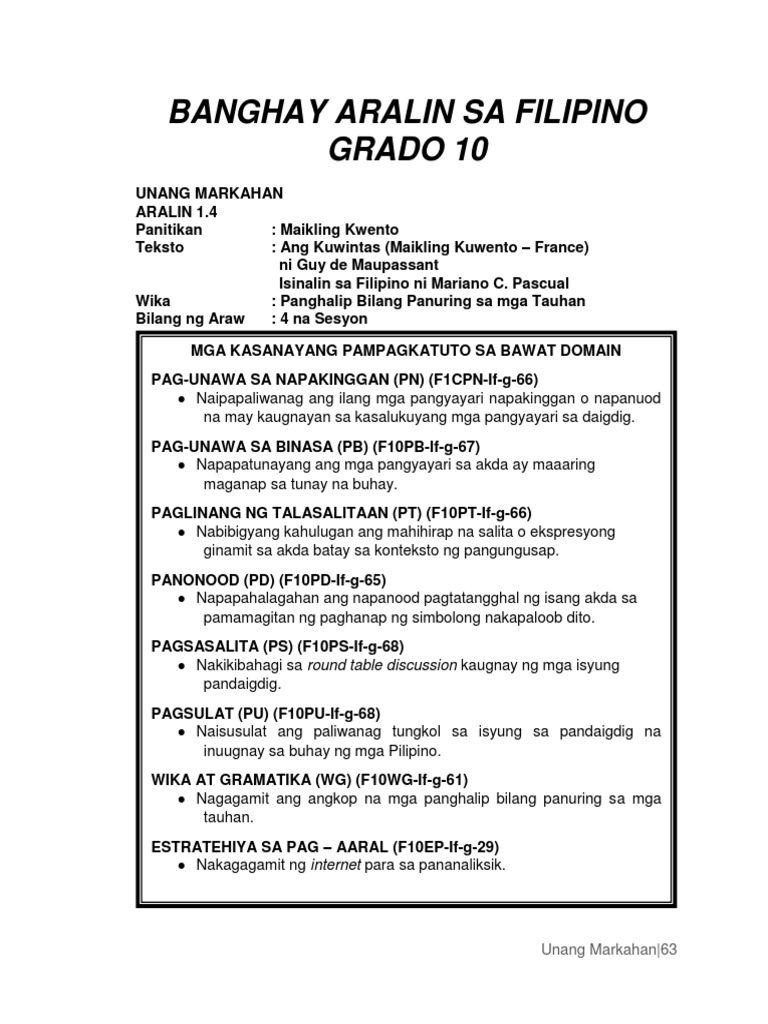 Ano ang Maikling Kwento. Mag-request ng Pag-aaral sa Bibliya Pulong Memoryal Kombensiyon Aktibidad Mga Karanasan Buong Daigdig. Estilo ng Paglalahad Ang ginamit na manunulat sa estilo ng paglalahad ay sa paraang circular dahil nga simula ang kwento sa paghihirap ni Layo at sa Gitna nng makakamtan niya ang tagumpay at magandang buhay subalit ang Wakas nito ay nasa malunkot na bahagiNaipakita din dito ang pagging matatag ni Layo sa kabila ng mga nararanasan niya.