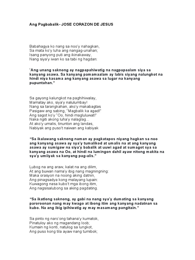 Ang Pagbabalik ni Jose Corazon de Jesus. 01 Ang babala ng kabiguan ni Tomas sa pananampalataya para sa mga sasalubong sa pagbabalik ng Panginoon sa mga huling araw. Sa kanyang pamamaalam ay labis siyang nalungkot na hindi niya kasama ang kanyang asawa sa lugar na kanyang pupuntahan.