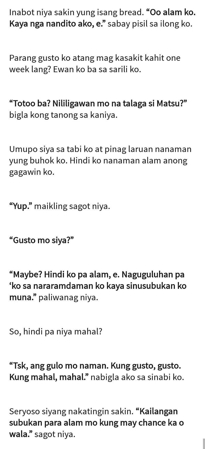 Dapat tanggapin mo na hindi ka rin niya gusto dahil kung may gusto siya sayo hindi ka na mapapaisip unless pakipot siya ng sobra. Hindi ko binabasag ang trip ng kung sino man ang magbabasa nito. Pero may mga taong sadyang mahina kayat nahihirapan makahabol.